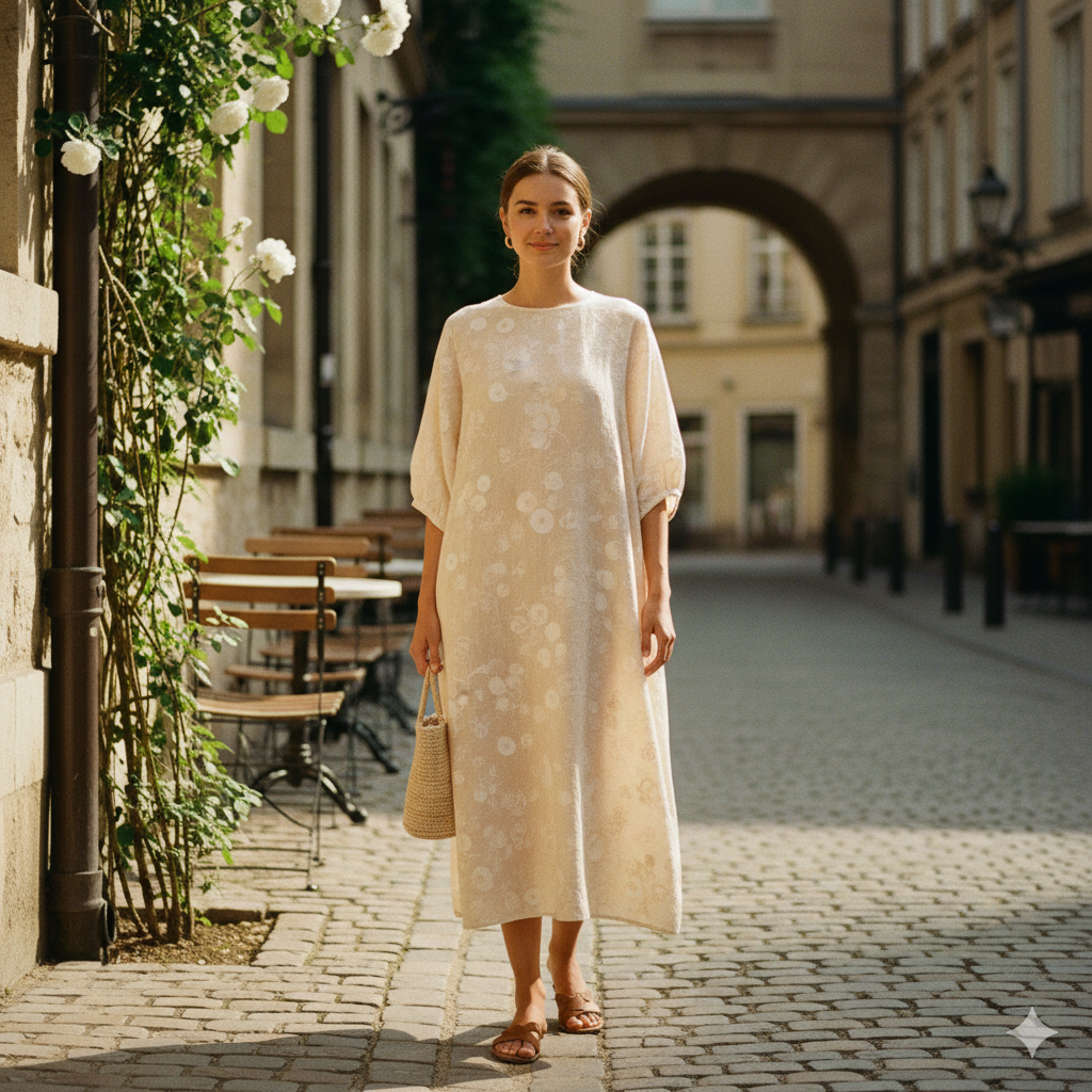 Discover effortless style with the Linen Bloom Midi Dress. Designed with a relaxed fit, it drapes softly for a flattering, comfortable look. Made from breathable linen with subtle floral detailing, it blends romance with refinement. Finished with a modest neckline and airy sleeves, it’s perfect for women who value comfort with elegance.